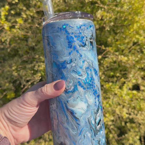 20oz skinny MakerFlo double wall stainless steel tumbler with straw.