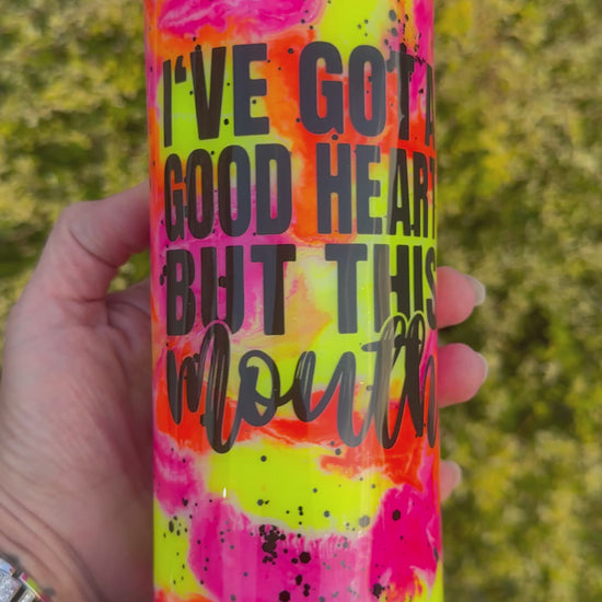 “I’ve Got a Good Heart” Neon Ink Swirl Tumbler