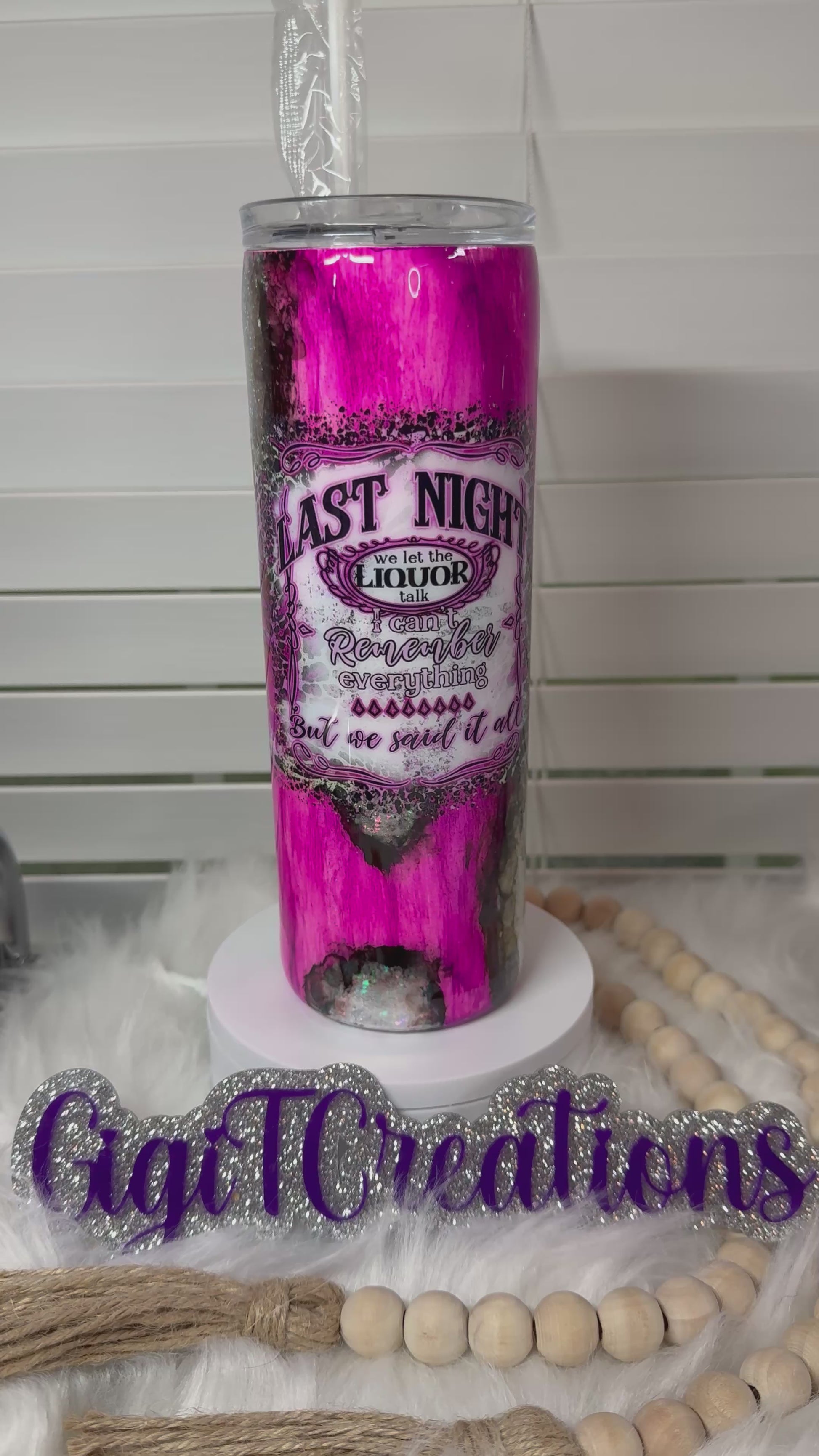 "Last Night" Pink Woodgrain/Glitter Peekaboo
