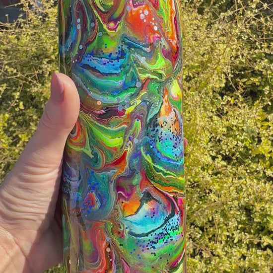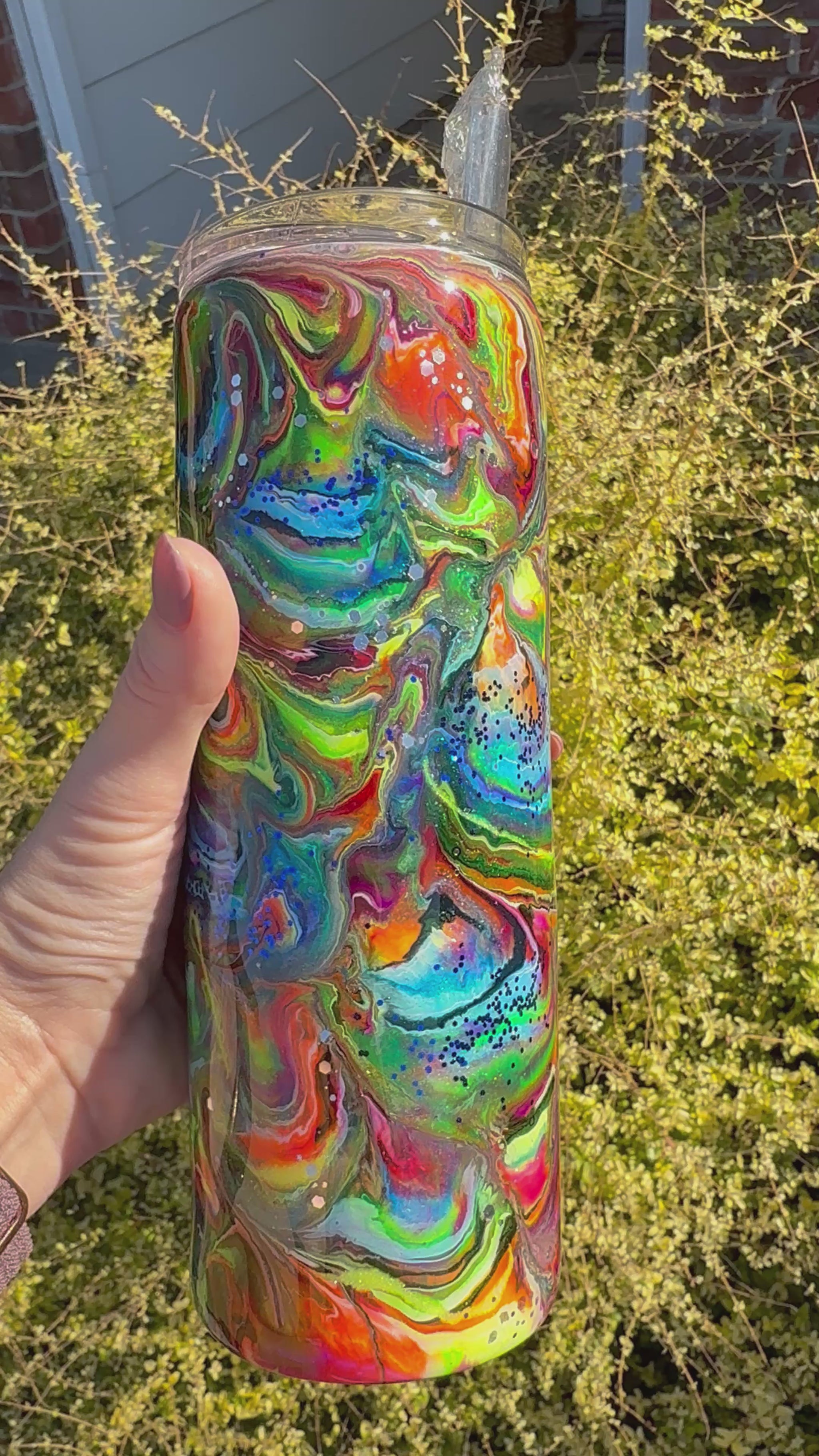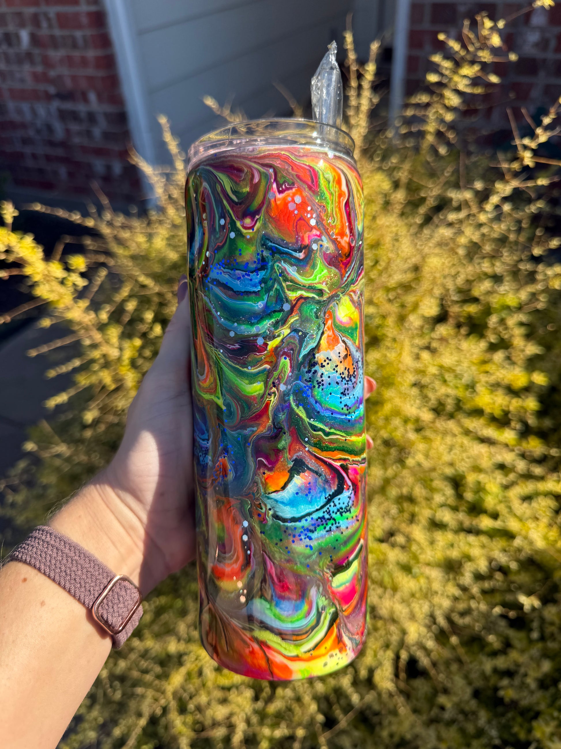 20oz skinny MakerFlo double wall stainless steel tumbler with straw.