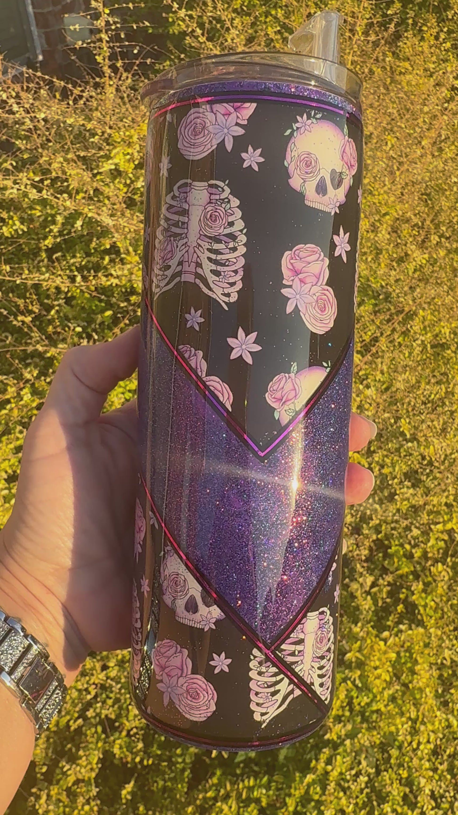 Purple Skulls Glitter Vinyl Tumbler
